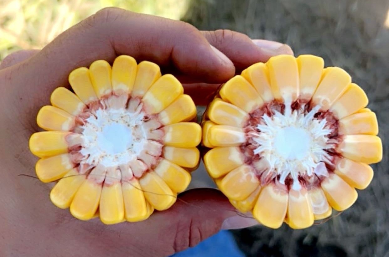 Dialing in your kernel-per-bushel figure based on corn hybrid and weather can result in a more accurate corn yield estimate. Pictured: A642-76 (left) and A647-42 (right).